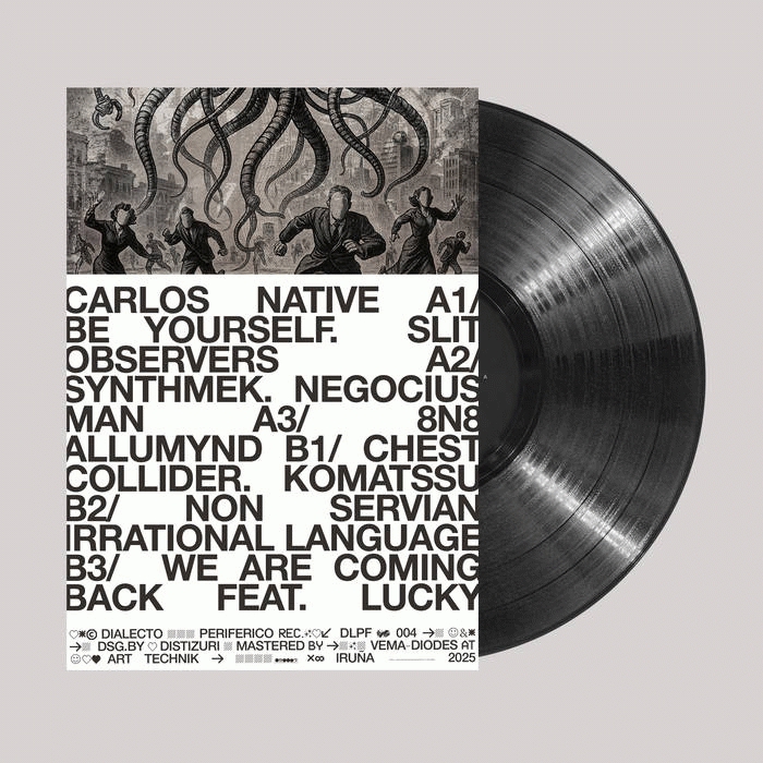 The latest release from the DIALECTO PERIFERICO label is now available on 12” vinyl. This release features Carlos Native, Slit Observers, Negocius Man, Allumynd, Komatssu, and Irrational Language with Lucky.