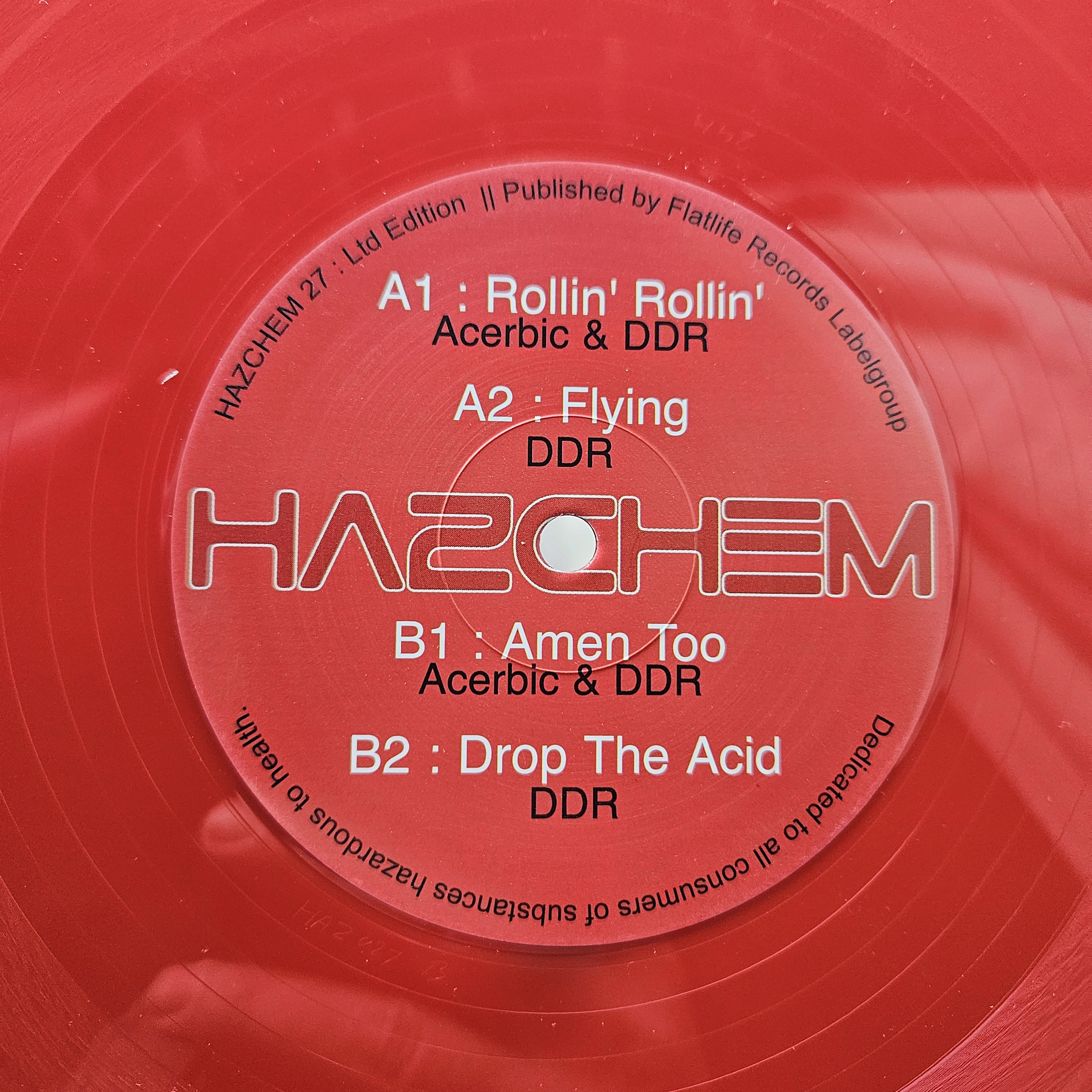 Acid Techno meets Acid House on this one !! DDR is back with his wild oldschool label: "Hazchem". Together with Acerbic; he is nailing it on this one !! For the acidheadz among us: Big release this one - pressed on beautiful limited shiny RED SOLID Vinyl !!!