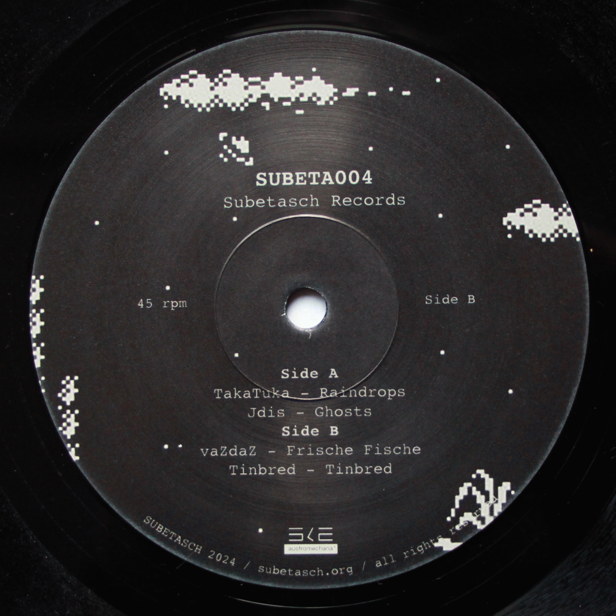 The fourth Subetasch-Release is again combining 4 tracks of our residents, a juxtaposition of different influences on one record, always keeping a driving groove - and again, approaching the dancefloor with exciting, playful sounds. Four tracks with crooked sounds, catchy melodies, distorted voices, pumping beats and last but not least, elements of surprise.